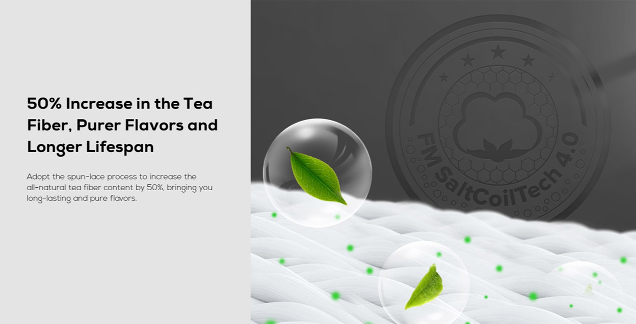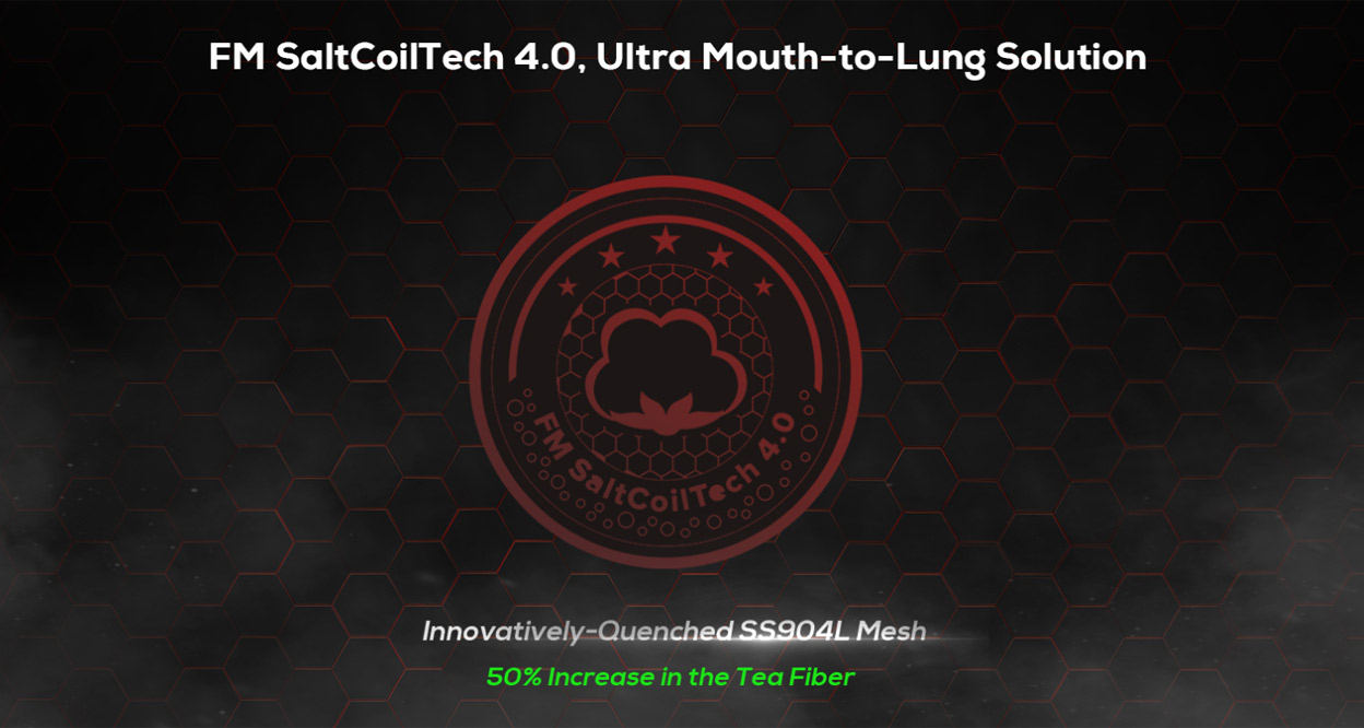 it applies FM SaltCoilTech 4.0 technology with the GX Mesh Coils series compatible. It currently comes in 0.8ohm and 1.0ohm. FM SaltCoilTech 4.0 is a newly-upgraded mesh coil technology that increases tea fiber content by 50% and uses innovatively-quenched SS904L mesh to bring purer flavors and extend the coils lifespan.